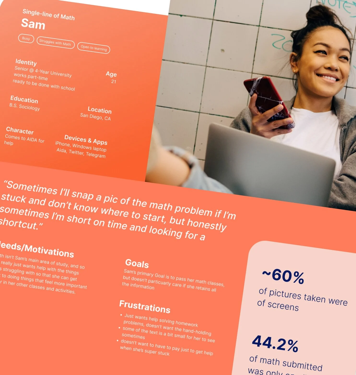 Aida helps learners learn by utilizing AI to create a deeply personalized tutoring experience. Working currently with calculus in particular, the Aida app works to help learners get “un-stuck” using OCR tech and a math engine to read their work, and adaptive diagnostics to help them study and deepen their understanding of the material.